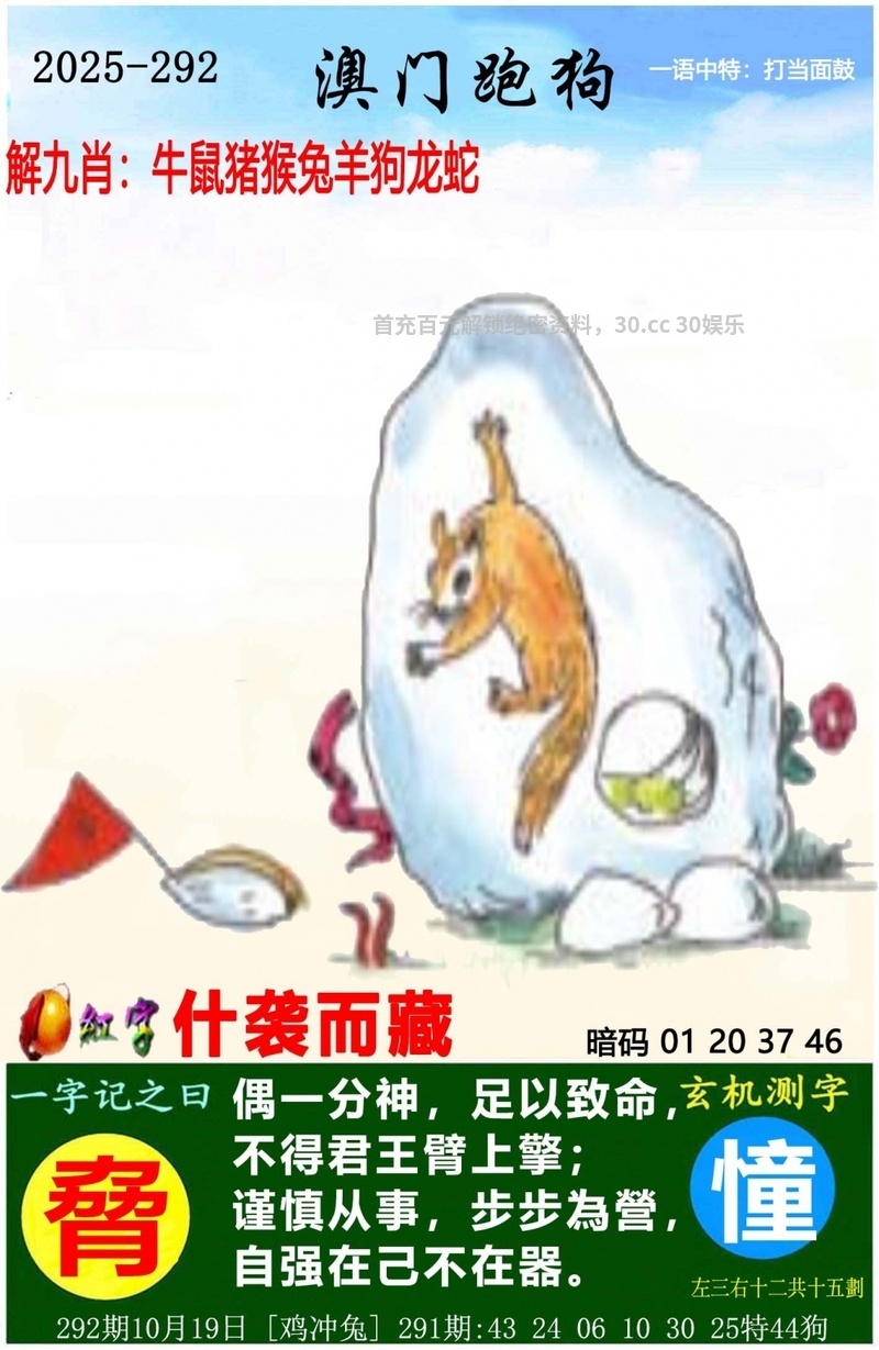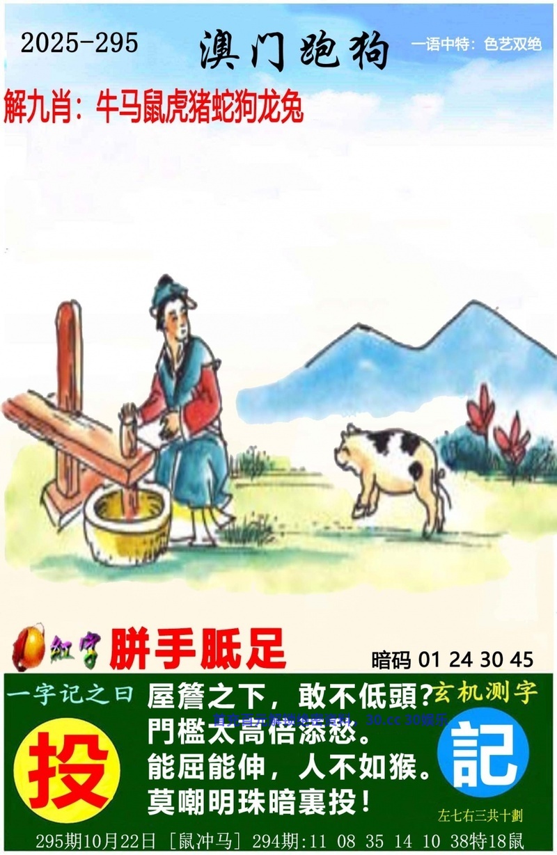 塘邊閒雀,一同贈慶,求知八卦是天性; 知得太多,未必高興,適時扮蠢是聰明。 玄機測字: |